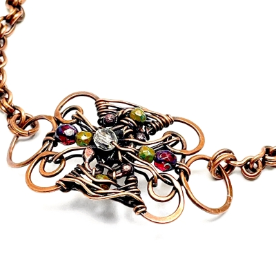 Hand-crafted macrame-inspired design. Each link is textured and formed by hand, later oxidized to bring a vintage feel to the piece. Measures 8''long but can just be adjusted to a shorter length. Liver of Sulfur is used to create an antique finish. The bracelet is protected with a thin layer of ProtectaClear to prevent tarnishing.