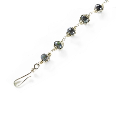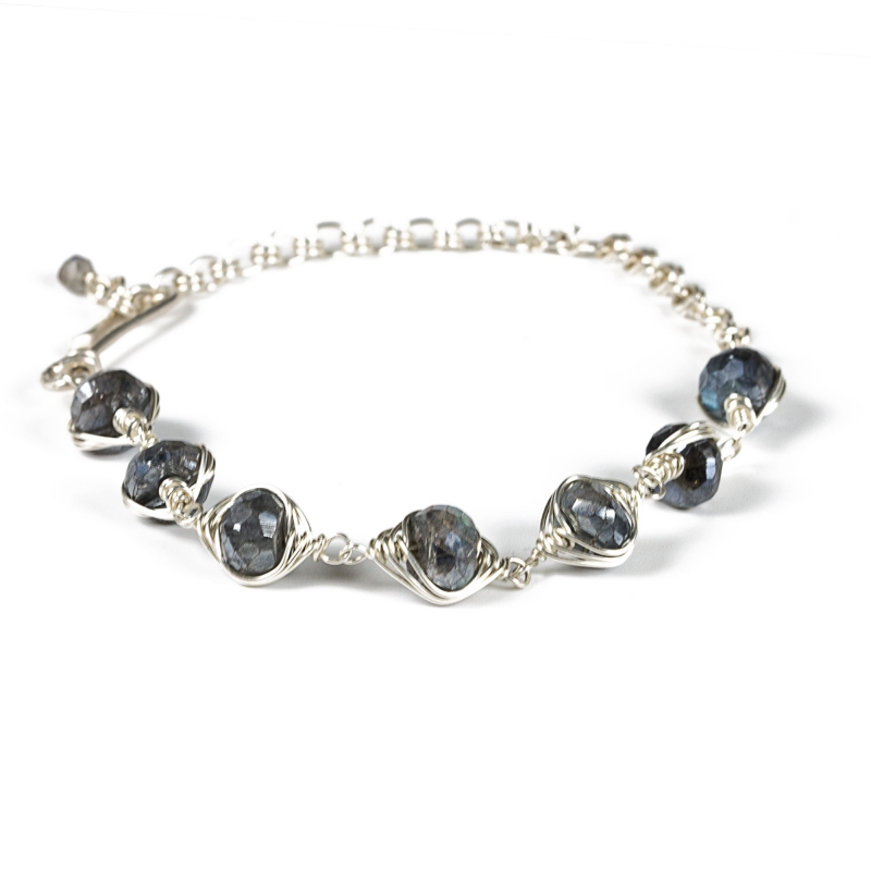 This bracelet is made from Sterling Silver wires and seven sparkly Labradorite stones. Each Labradorite is wire wrapped using a herringbone stitch. The bracelet measures 9 and 1/2 inches long.