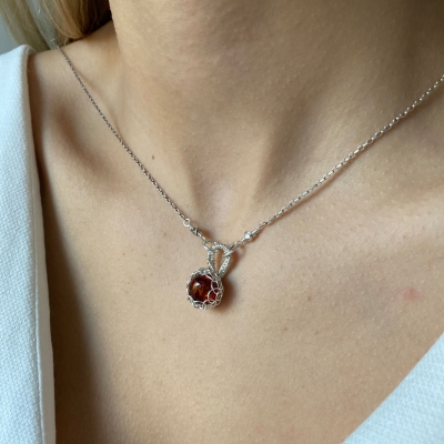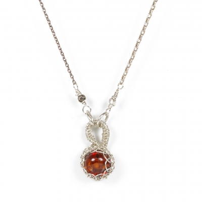 This necklace is made with Sterling Silver wire, delicately wrapping a small amber stone in a netted style. Adds just a little spark to your everyday outfits! This necklace measures 21 1/2 inches long but can be adjusted to any shorter length, down to 17 1/2".