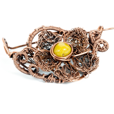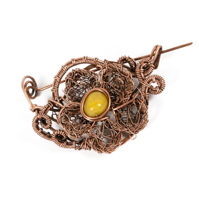 The flower pin is created using a free-hand technique, shaping this pin into a textured, 3D piece. Measures 2 1/2" L. Liver of Sulfur is used to create an antique finish. Protected with a thin layer of ProtectaClear to prevent tarnishing.