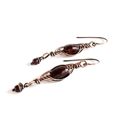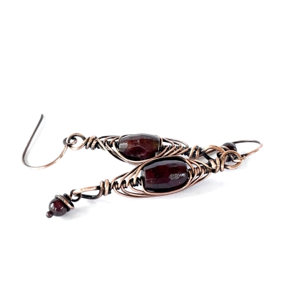 Hand-crafted out of vintage, pure copper wires with smooth, domed colored agate stones. Copper hugs the top and bottom of the set stones, creating an elegant, everyday pair of earrings. Measures 2 1/4'' long. French wires. The Liver of Sulfur is used to create an antique finish. The earrings are protected with a thin layer of ProtectaClear to prevent tarnishing.