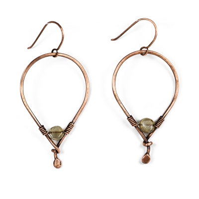 These everyday pure copper earrings were created out of vintage wires and have a Citrine stone resting on them. Measures 2 1/2" L. French wires. The earrings are protected with a thin layer of ProtectaClear to prevent tarnishing.