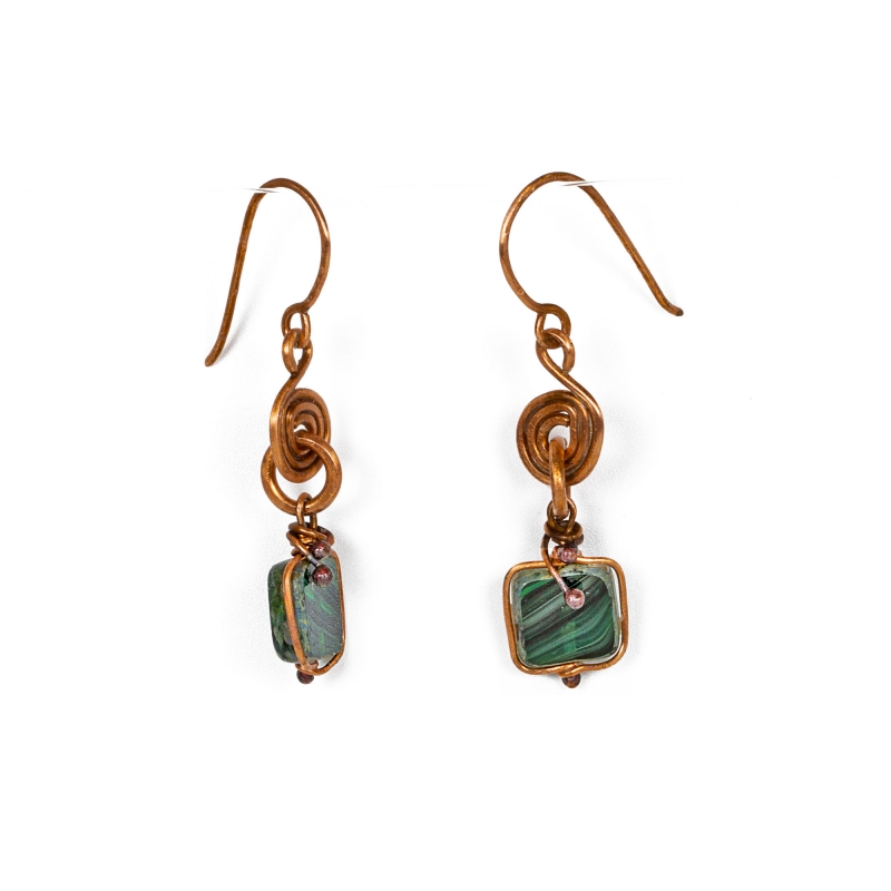 These beautiful yet simple Czech glass earrings are made out of vintage copper wire. Measured 2" long. French wires. Liver of Sulfur is used to create an antique finish. The earrings are protected with a thin layer of ProtectaClear to prevent tarnishing.