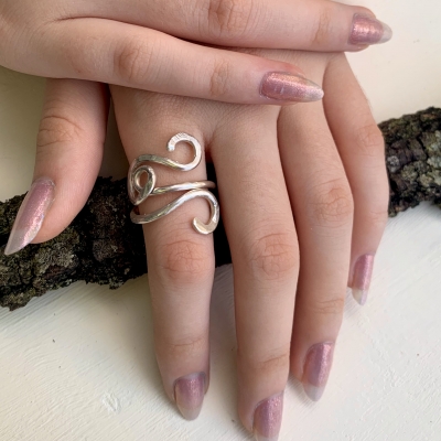 Created from thick sterling wire, this design is one of my favorites to make! The free-form design allows for a natural flow and really looks quite modern on the finger. Measures ring size 8.