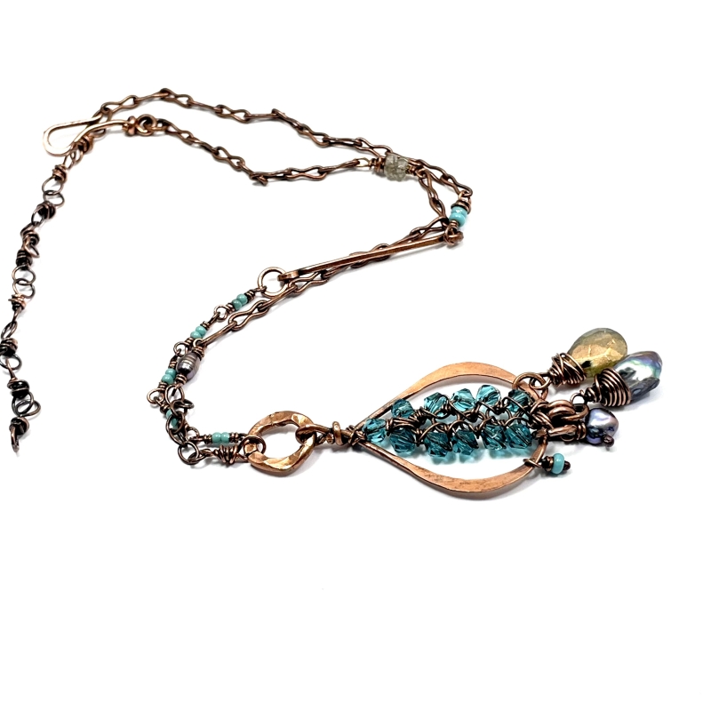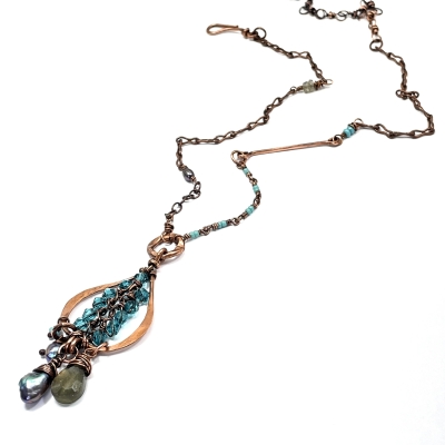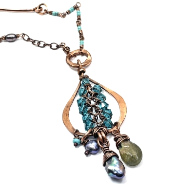 This nature-inspired piece is one of my favorite creations with crystals and wires. The centerpiece is woven with scrap wires.