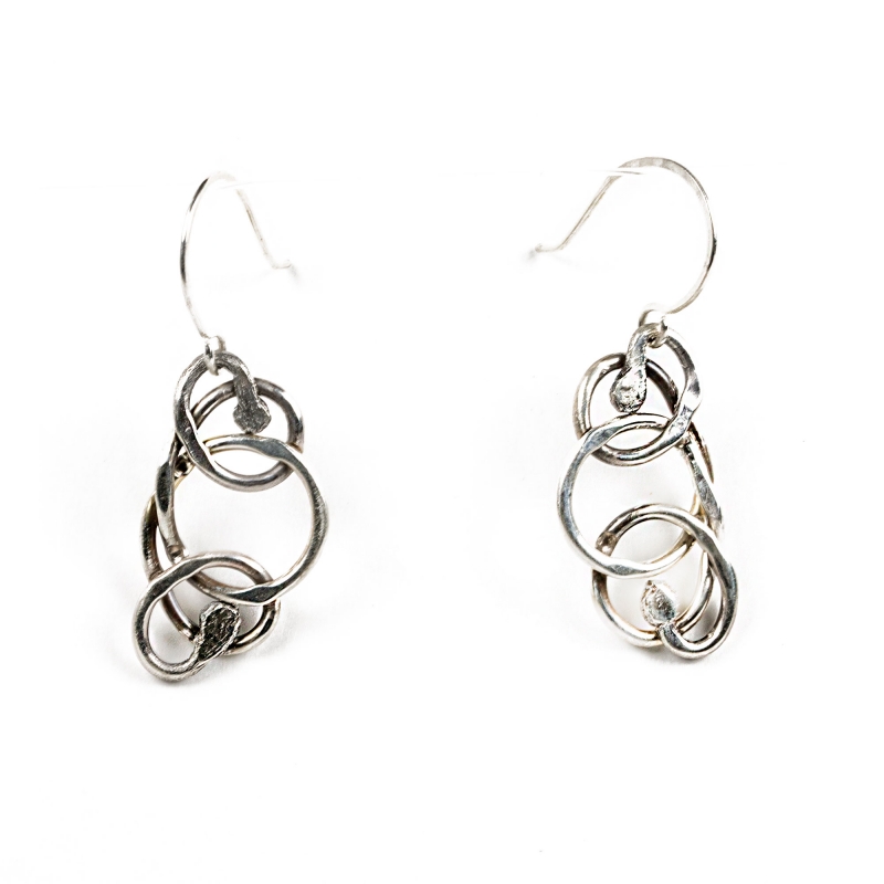 Handcrafted out of sterling silver wire. These simple wire-wrapped earrings are lightweight and measure 1 1/2 inches long. Perfect for everyday use. French wire hook. Liver of Sulfur used to create an antique finish.