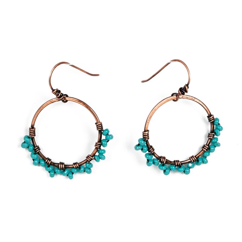 Handcrafted out of oxidized vintage copper wires. These simple hoop earrings are lightweight and measure 1 3/4 inches long. Perfect for everyday use. French wire hook. Liver of Sulfur used to create an antique finish. Protected with a thin coat of ProtectaClear.