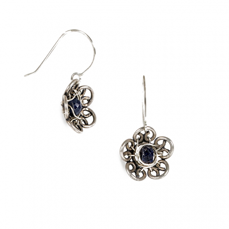 Handcrafted out of sterling silver wire. These dainty sapphires earrings are lightweight and measure 1 inch long. Perfect for everyday use. French wire hook.