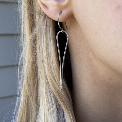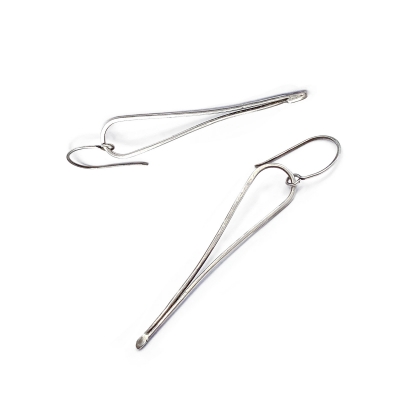 Simple icicle shaped earrings made out of sterling silver wire. Hammered. Light-weight and measure 2 and 1/2 inches. French wires. Liver of Sulfur used to create an antique finish.