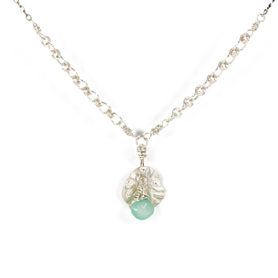 This everyday piece combines delicate Sterling Silver chains and precious-metal clay with a delicate Chalcedony teardrop. The necklace measures 19'' long but can be adjusted to a shorter length.