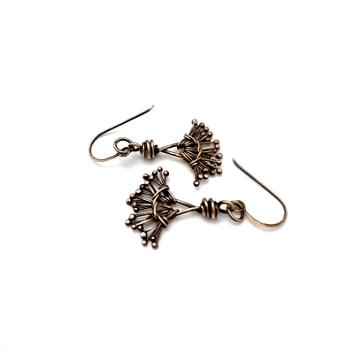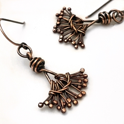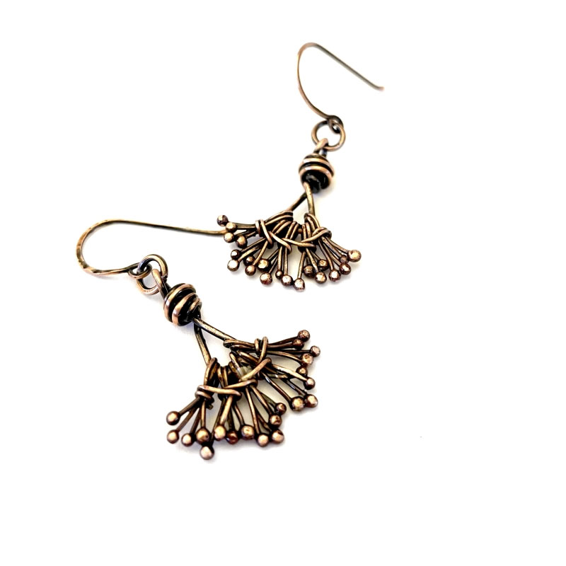 Hand-crafted out of vintage, pure copper wires. Embellished with hand torched delicate copper tentacle. Measures 2'3/4'L. French wires. Liver of Sulfur is used to create an antique finish. The earrings are protected with a thin layer of ProtectaClear.
