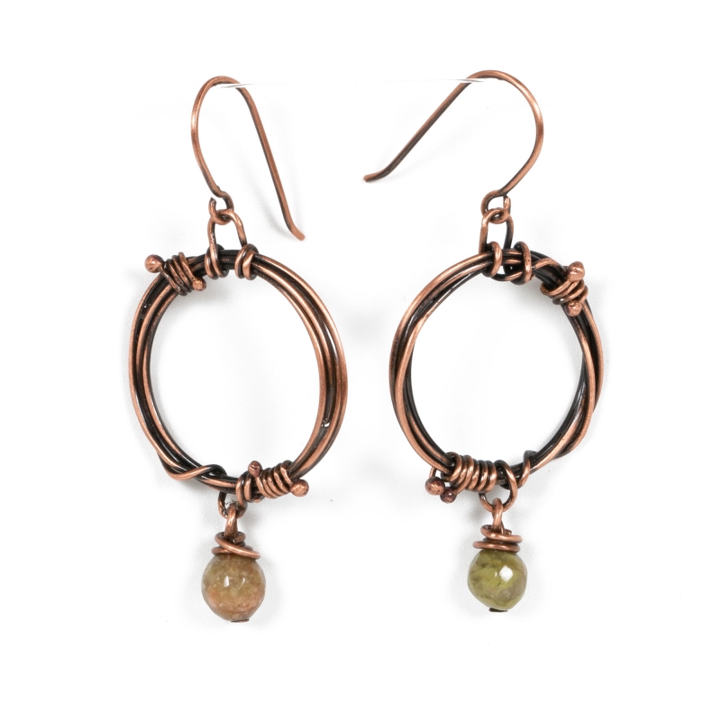 Hand-crafted out of vintage, pure copper wires which are weaved together to create a more interesting hoop earring. Earrings measure 2" long. French wires. The Liver of Sulfur used to create an antique finish. The earrings are protected with a thin layer of ProtectaClear to prevent tarnishing.